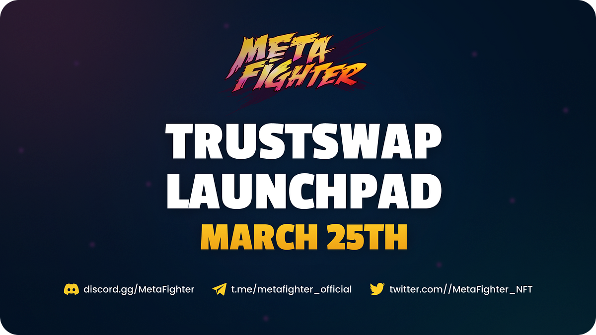 * Launchpad dates and details are subject to change. This is not an endorsement, partnership or an offer for investment by TrustSwap. MetaFighter is using the TrustSwap Launchpad as a customer, with specific requests as to how they need their launch to operate. TrustSwap is a provider of non-custodial, smart-contract-based software services. Digital assets carry a high level of risk. Participation is performed at your own risk. Exercise caution and conduct your own due diligence.
